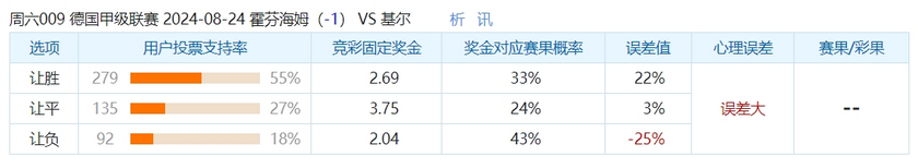 周六009 德甲 2024-08-24 霍芬海姆(-1)VS基尔