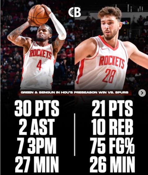 上赛季,申京出战 63 场比赛,场均得分 21.1 分,篮板 9.3 个,助攻 5 次,抢断 1.2 次,投篮命中率达 53.7%,在进步最快球员评选中得票排名第三。格林则打满 82 场比赛,场均贡献 19.6 分、5.2 个篮板和 3.5 次助攻,投篮命中率为 42.3%。在今年的季前赛中,两人状态俱佳,均出战 4 场比赛,格林场均出场 23.8 分钟,能拿下 20.5 分、3.3 个篮板,三分命中率为 43.2%;申京场均出场 24.5 分钟,贡献 16.8 分、7.3 个篮板和 2.8 次助攻,投篮命中率高达 66.7%。