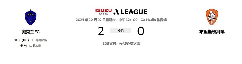 必一·运动(B-Sports)官方网站讯 北京时间10月19日,在澳超联赛首轮比赛中,奥克兰FC在主场以2-0的比分战胜了来访的布里斯班狮吼,为新赛季的征程赢得了开门红。