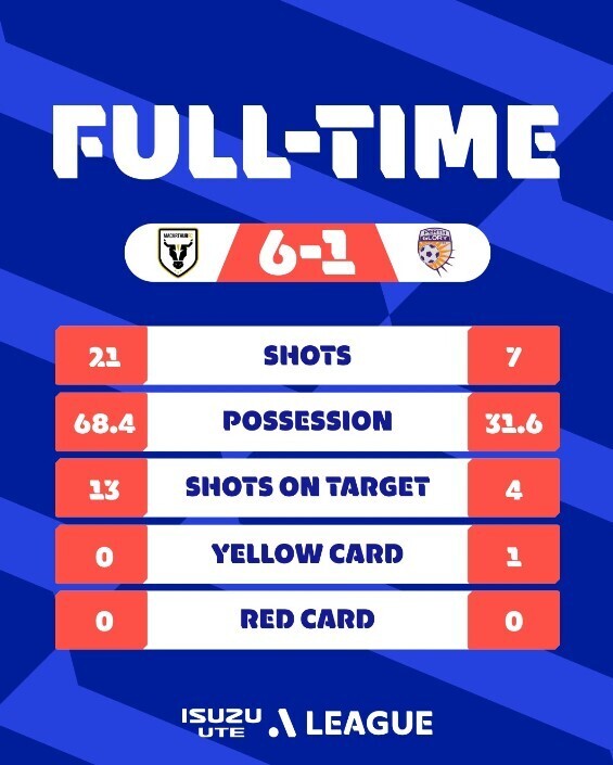 下半场开始后,麦克阿瑟FC的攻势依然猛烈。第61分钟,亚科利什状态火热,他的一次助攻帮助热尔曼轻松破门,为球队再添一分。此时,比分已经来到了5-0,麦克阿瑟FC几乎锁定了胜局。尽管珀斯光荣在随后的比赛中展开了反击,但他们的努力并未能改变比赛的最终结果。第73分钟,Adam Bugarija为珀斯光荣打入一球,为球队挽回了一些颜面。然而,这粒进球已经无法改变球队落败的命运。最终,麦克阿瑟FC以6-1的比分大胜珀斯光荣,为新赛季的征程奠定了坚实的基础。