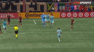 其中比赛来到第40分钟,场上出现惊人一幕,亚特兰大联门将古赞失误滑倒送大礼,马丁内斯挑射空门得手!迈阿密国际1-0领先!