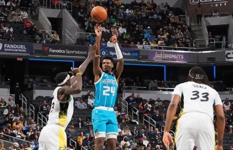 第三节步行者哈利伯顿拿下6分,黄蜂布兰登-米勒拿下6分,第三节结束步行者82-83落后黄蜂